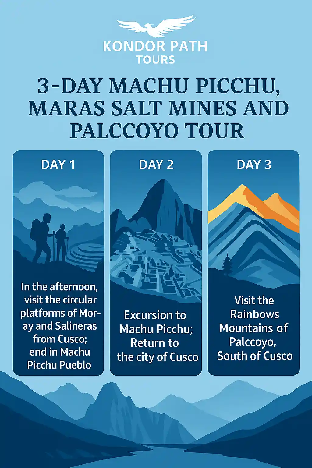 Why choose the Tour Machu Picchu, Moray and Maras Salt Mines Palccoyo 3 Days with Kondor Path Tours?